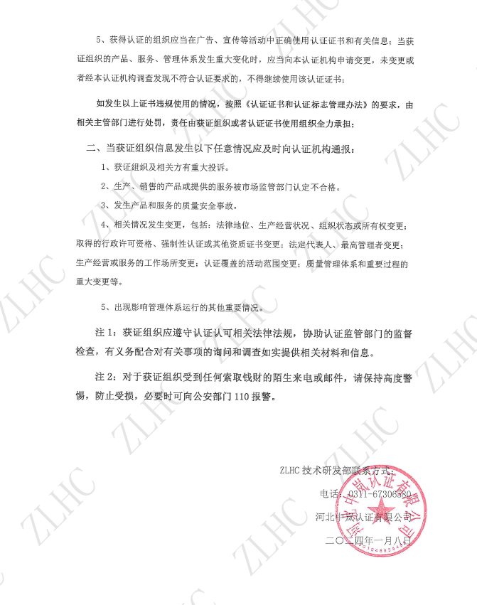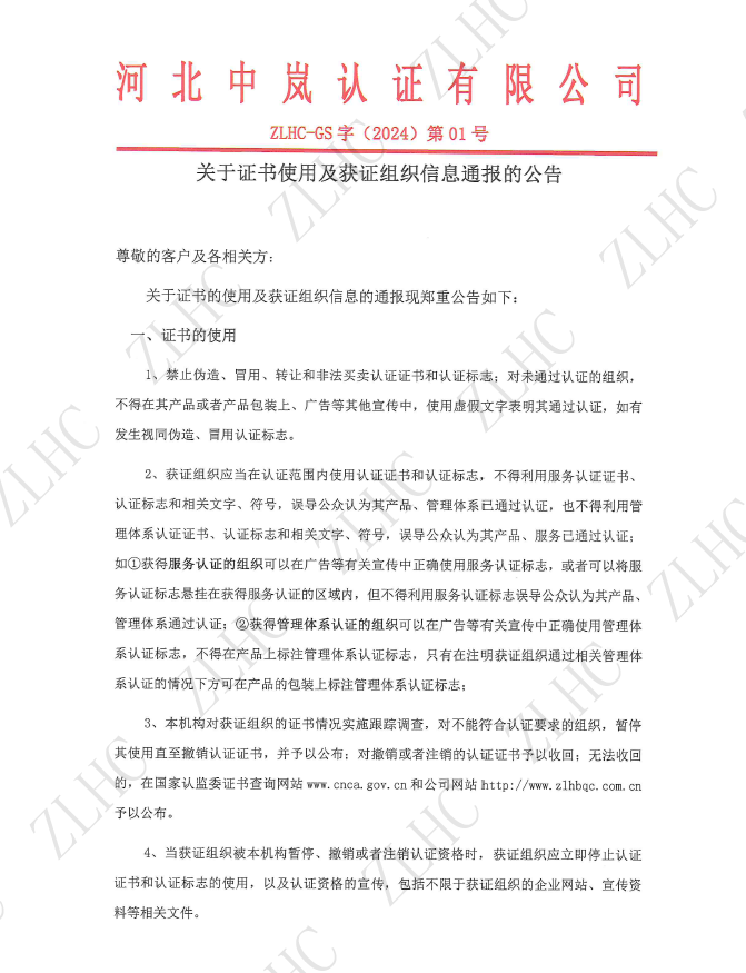 2024年1月8日 關于證書使用及獲證組織信息通報的公告